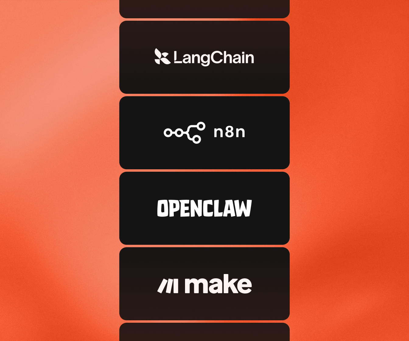 We're tool-agnostic. We work with OpenClaw, n8n, Make, Zapier, custom Python agents, OpenAI, Claude, Gemini, and more. We recommend what fits your stack, not what pays us a referral fee.