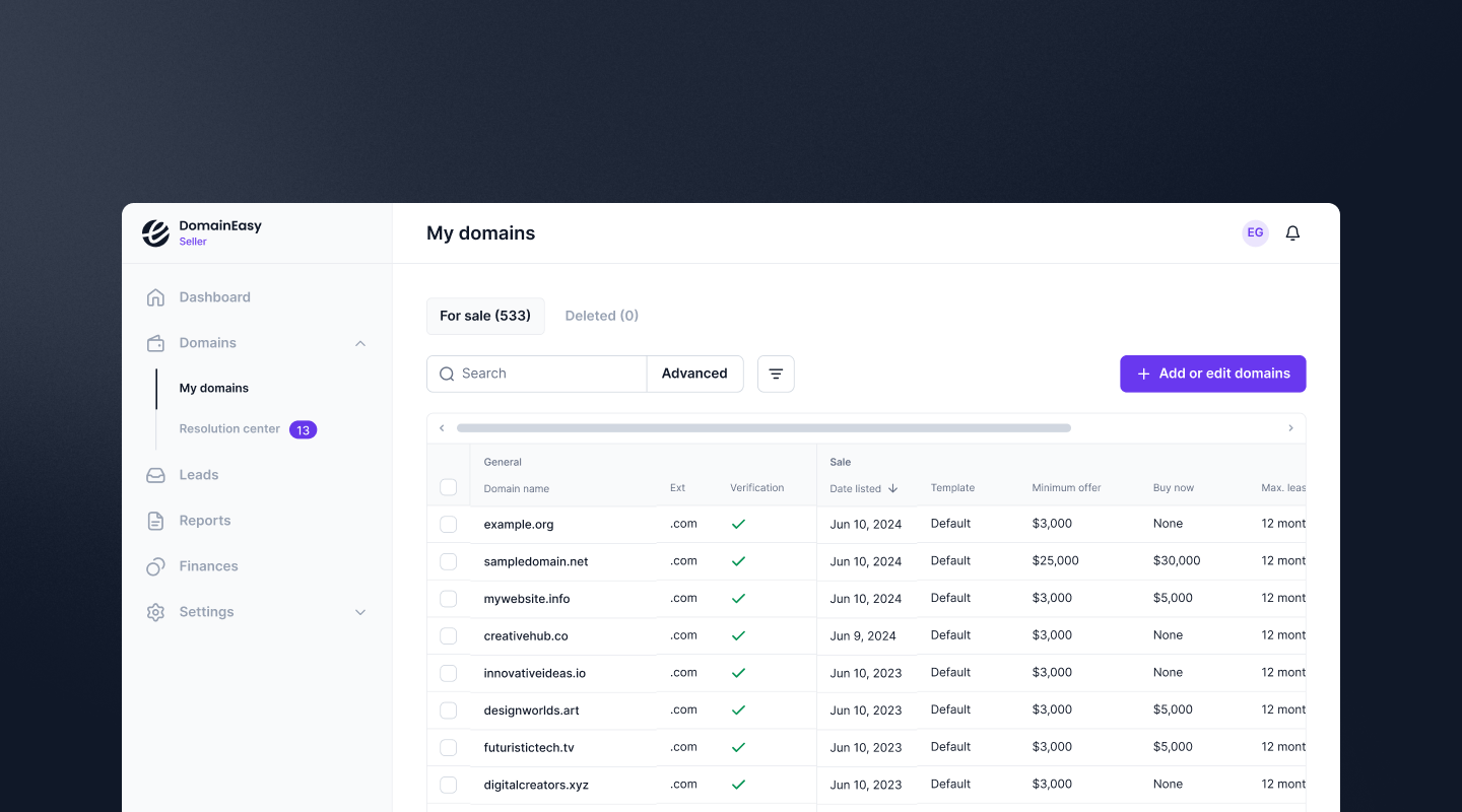 Whether you're a domain owner looking to sell or a brokerage looking to streamline your business, DomainEasy provides all the tools you need to succeed.