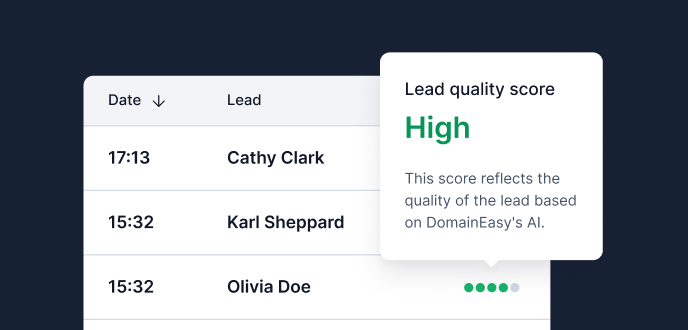 DomainEasy assigns a quality score to each buyer, qualifying leads and providing deep analytics to sellers.